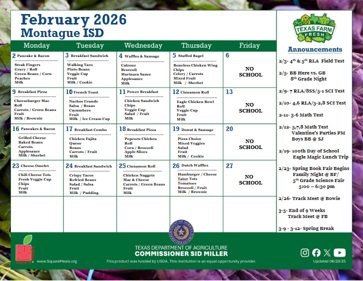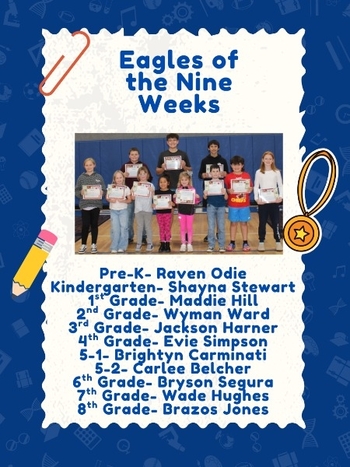 Montague ISD proudly recognized outstanding students and staff during the Eagle Magic 2nd Nine Weeks Awards Assembly, celebrating academic achievement, attendance, leadership, and service. The following Eagles were honored for their hard work and dedication during the second nine weeks grading period.