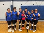 The Montague Lady Eagles battled through a long day of volleyball on Saturday, capturing the consolation championship at the Windthorst Tournament. With 7 of their 10 players in 6th or 7th grade, the Lady Eagles competed in the 7th-grade division against much larger schools.